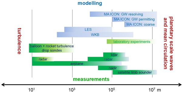 Methods employed will be studies of critical processes by laboratory experiments, atmospheric measurements, satellite data analyses, modelling, and theory. The atmospheric measurements and satellite data will be used for development and validation of the theory of gravity waves and their parametrisation. Those will be implemented into the weather-and climate prediction model ICON which is developed jointly by Deutscher Wetterdienst Offenbach and Max-Planck Institut for Meteorology in Hamburg.